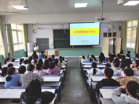 实习前召开了动员大会,自然地理与资源环境系主任李秀美、专业实习指导教师史兴俊介绍了实习安排、实习内容,强调了相关安全问题,要求同学们在实习过程中注意实习地观察和调研,做好资料搜集整理、实习记录等工作。