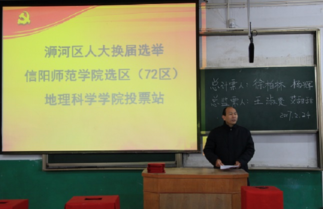 2月24日上午,yL23411永利vip官网登录入口党委书记吴泽成,副院长牛继强,党委副书记朱伟,副院长王义民、刘明华、高军波以及学院老师、学生一千余名纷纷来到信阳市浉河区人大换届选举信阳师范学院选区(72区)yL23411永利vip官网登录入口投票站对信阳市浉河区第五届人民代表大会代表进行投票选举。