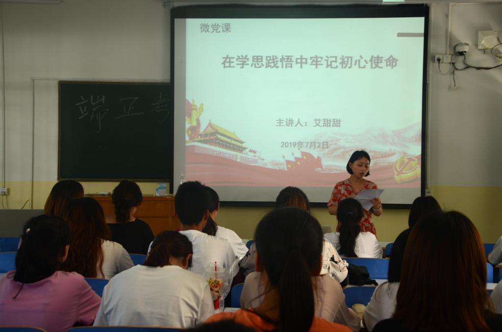 7月2日,yL23411永利vip官网登录入口学生第一党支部书记艾甜甜同志于教三03为支部党员讲党课,主题为“在学思践悟中牢记初心使命”。学生第一党支部全体党员、入党积极分子三十余人参加了此次党课学习。