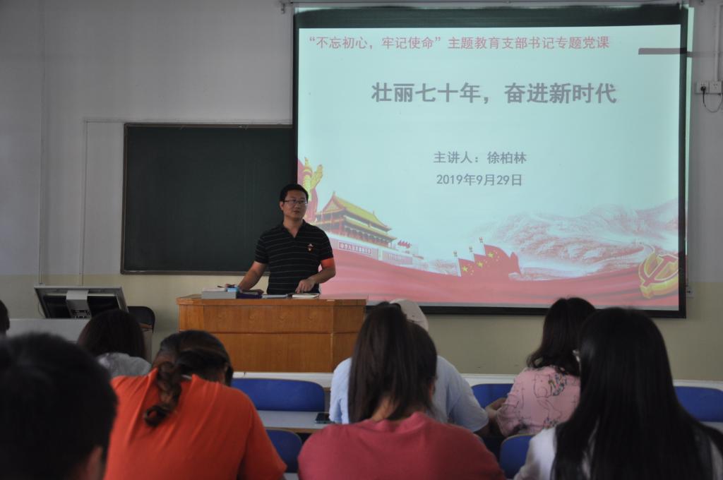 9月29日,yL23411永利vip官网登录入口学生第二党支部在教三03开展了题为“壮丽七十年,奋进新时代”的“不忘初心,牢记使命”主题教育党课,学生第二党支部书记徐柏林与党支部全体党员、预备党员共计16人一同参加本次活动,党课由徐柏林主讲。