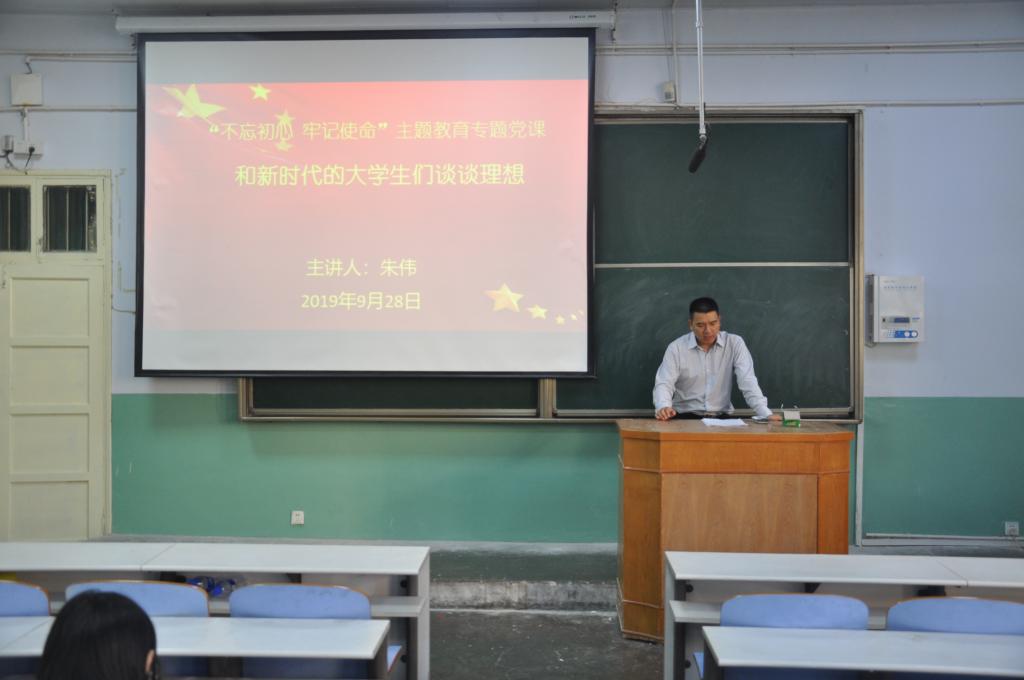 9月28日下午,yL23411永利vip官网登录入口党委副书记朱伟以“和新时代的大学生们谈谈理想”为题,给永利官网学生党支部全体党员和入党积极分子讲“不忘初心、牢记使命”主题教育专题党课。
