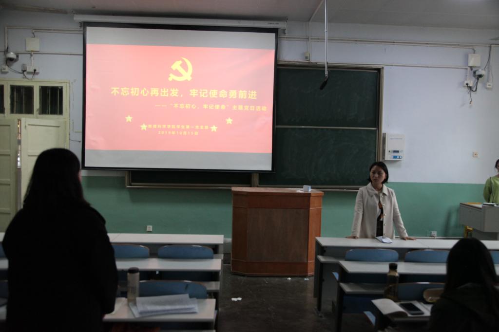 为深入开展“不忘初心、牢记使命”主题教育,10月15日,yL23411永利vip官网登录入口学生第一党支部开展“不忘初心再出发,牢记使命勇前进”主题党日活动。此次活动由学生第一党支部书记艾甜甜主持,支部全体党员参加。