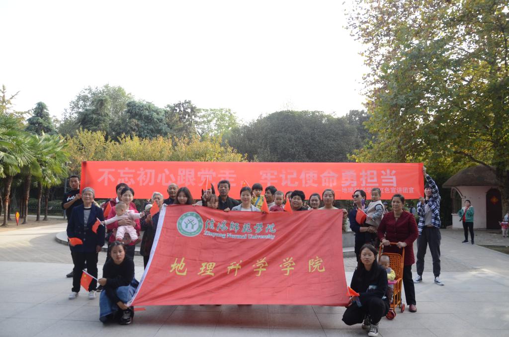 10月29日,yL23411永利vip官网登录入口红色宣讲团前往信阳市浉河公园开展“不忘初心、牢记使命”红色宣讲活动。宣讲团由在“讲红色故事,传红色基因”演讲比赛表现突出的学生党员组成。