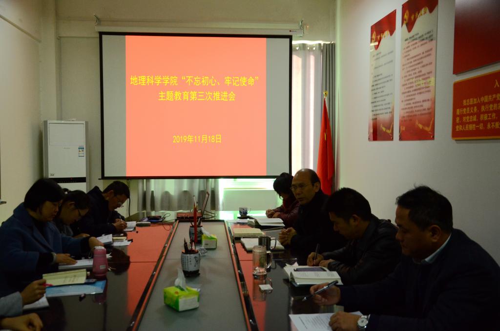 11月18日,yL23411永利vip官网登录入口于理科楼南楼403会议室召开“不忘初心、牢记使命”主题教育第三次推进会。yL23411永利vip官网登录入口党委书记吴泽成,党委副书记牛继强、朱伟,党委委员刘明华,各党支部书记一同参加了此次会议。会议由吴泽成主持。