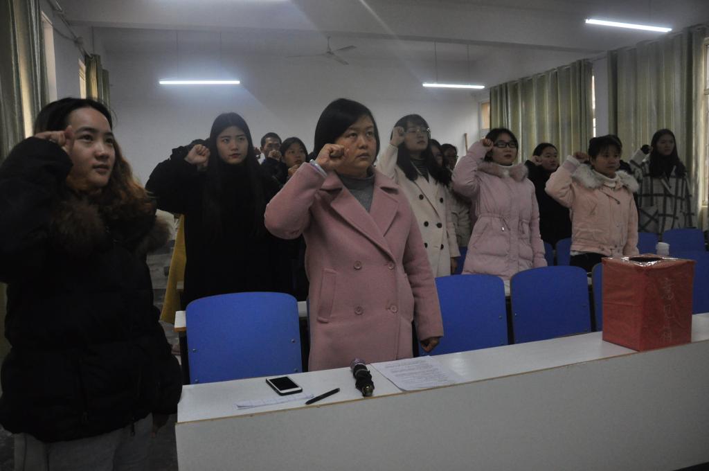 杨辉带领全体与会人员进行入党宣誓,预备党员向大会表达了自身的想法与决心,纷纷表示在今后的学习工作中,将坚定目标、严格要求自身,努力改正现有不足,积极向优秀共产党员学习树立先锋模范作用,争取早日加入中国共产党。