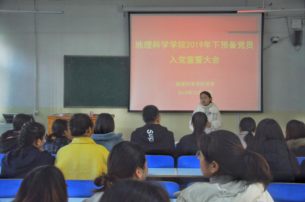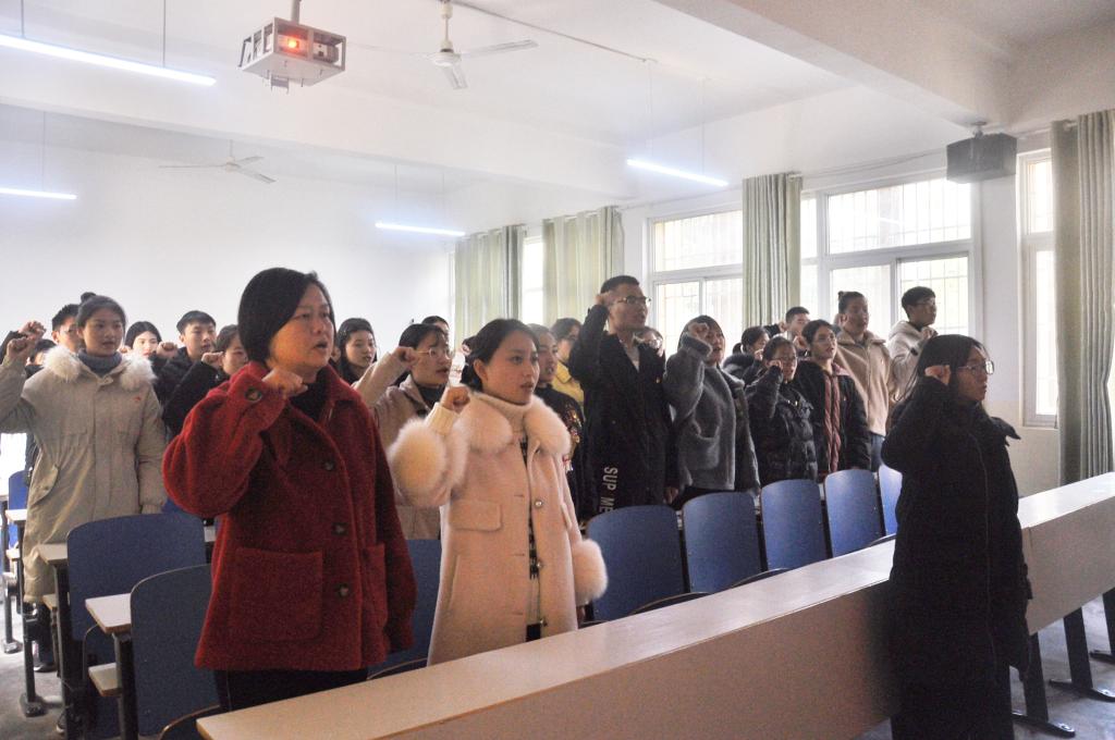 为加强对新发展预备党员的教育,提升新发展预备党员的党性修养,增强新发展预备党员的入党仪式感,12月13日中午,yL23411永利vip官网登录入口党委组织2019年下半年新发展预备党员在教三04进行了集体入党宣誓。yL23411永利vip官网登录入口学生第一党支部书记艾甜甜,学生第三党支部书记杨辉与全体发展对象一同参加了此次入党宣誓仪式。