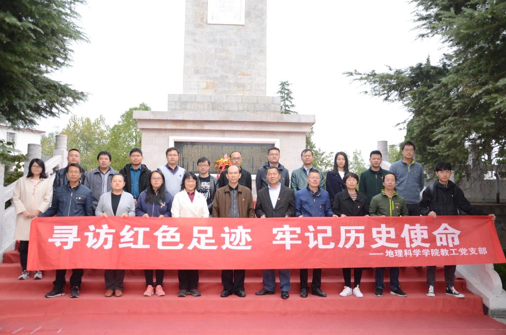 为深入开展“不忘初心,牢记使命”主题教育,10月26日,yL23411永利vip官网登录入口教工党支部全体党员赴商城县开展“寻访红色足迹 牢记历史使命”主题教育实践活动。学院党委书记吴泽成、党委委员刘明华参加此次活动。