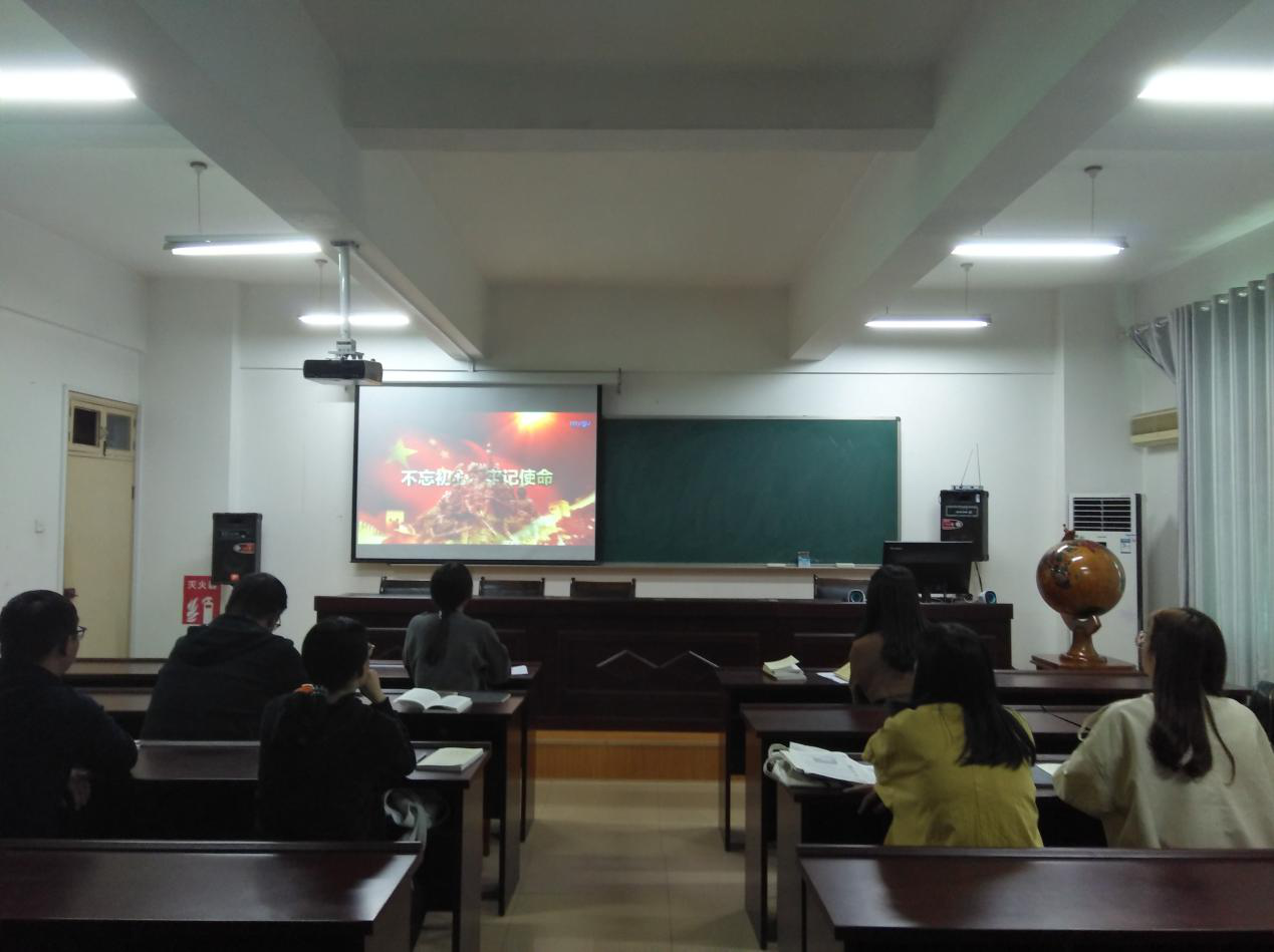 2019年10月17日,信阳师范学院yL23411永利vip官网登录入口研究生党支部进一步开展“不忘初心、牢记使命”主题教育活动,加强党员教育管理,在理科楼南楼410会议室进行《初心永恒》专题片观看。