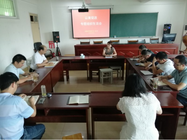 2020年9月8日,信阳师范学院yL23411永利vip官网登录入口教工第一党支部全体党员在理科楼南楼410会议室召开了以案促改专题组织生活会,学院党委书记吴泽成、副书记朱伟以普通党员身份参加会议。
