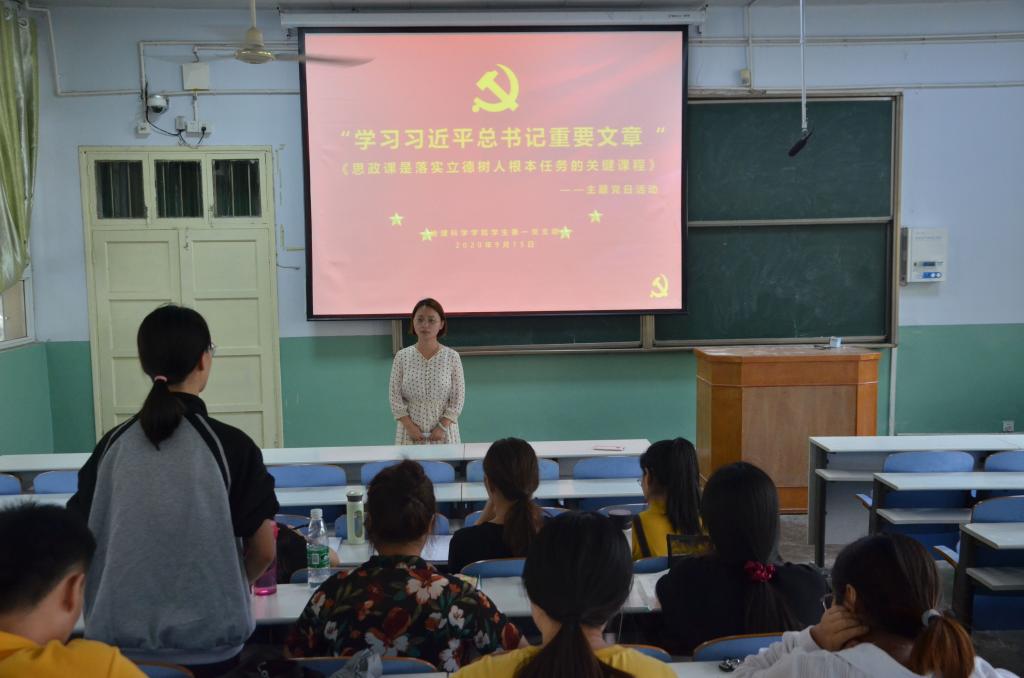 活动伊始,支部党员共同学习《思政课是落实立德树人根本任务的关键课程》。随后,大家结合个人感悟进行交流讨论,与会同志踊跃发言。大家一致认为,大学生党员要自觉增强四个自信,厚植爱国主义情怀,把爱国情、强国志、报国行自觉融入坚持和发展中国特色社会主义、建设社会主义现代化强国、实现中华民族伟大复兴的奋斗之中。最后,艾甜甜作总结讲话,她指出,支部党员以后大部分都要从事教师职业,现在要加强自身修养,练好内功,以后教学中用新时代中国特色社会主义思想铸魂育人,培养正确的世界观、人生观、价值观。