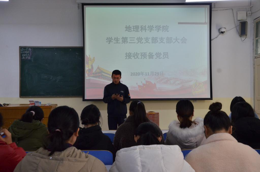 11月29日,yL23411永利vip官网登录入口学生第三党支部2020年秋季预备党员接收大会于教三04顺利召开。学生第三党支部书记杨辉,全体党员及2020年秋季发展对象共同参与本次会议。会议由张世可主持。