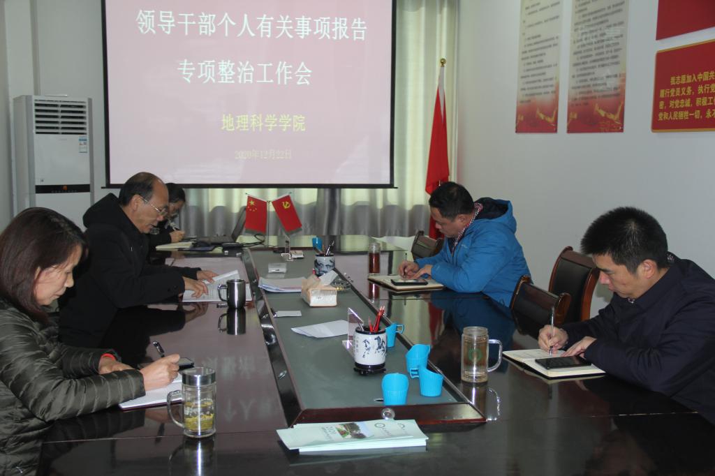 2020年12月22日,yL23411永利vip官网登录入口在理科楼南403会议室召开专题学习会议,组织永利官网处级领导干部学习个人有关事项报告相关文件精神。会议由党委书记吴泽成主持。