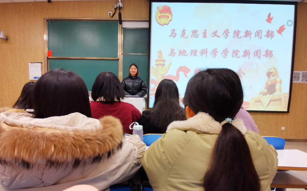 12月21日,yL23411永利vip官网登录入口学生会新闻部和马克思主义学院学生会新闻部经验交流会于社科楼515顺利举行。马克思主义学院学生会新闻部部长姜雨杭、副部长葛梦想,yL23411永利vip官网登录入口学生会新闻部部长卢秋月、副部长刘琼及两院新闻部干事一同参加此次会议。会议由葛梦想主持。
