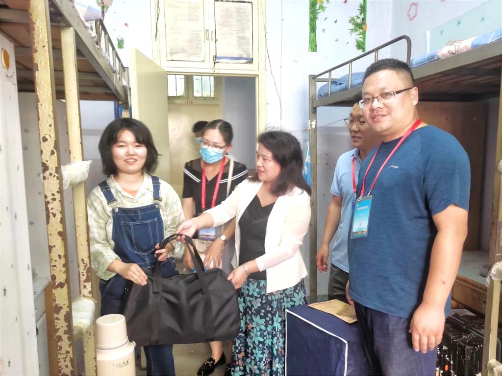 9月27日,yL23411永利vip官网登录入口党委书记宋力,党委副书记朱明,团委老师杨辉、姚玉坤、曹鹏鹏一同前往新生宿舍慰问,并送上爱心助学大礼包。