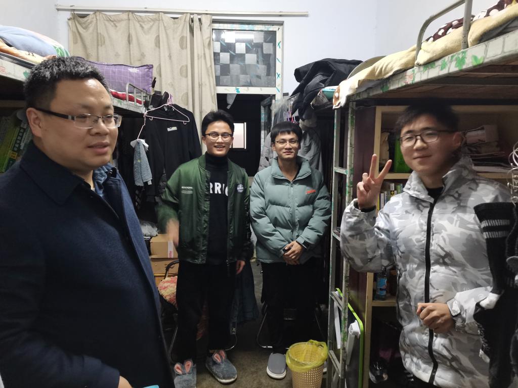 2022年1月1日晚上,yL23411永利vip官网登录入口党委副书记朱明带领全体班主任前往学生宿舍看望慰问留校学生,元旦之际,同学们感受到领导老师的关怀,温情倍至。