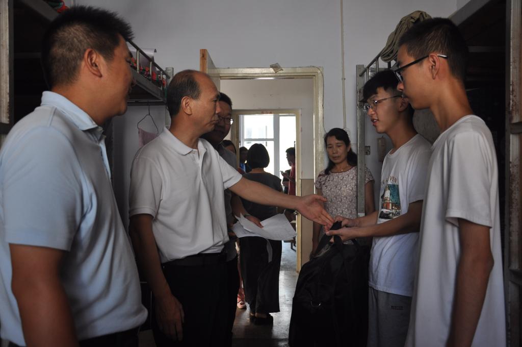 9月8日,yL23411永利vip官网登录入口党委书记吴泽成,副院长王义民,党委副书记朱伟,团委老师杨辉、艾甜甜、姚玉坤、曹鹏鹏一同前往新生宿舍慰问,并发放新生助学大礼包。